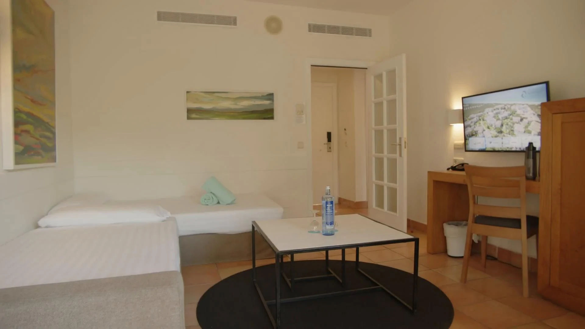 - Alle Zimmer mit Dusche, WC, Bidet, Haartrockner, Fernseher, Telefon, Safe, kleiner Kühlschrank, Balkon oder Terrasse, Klimaanlage/Heizung/Lüftung.